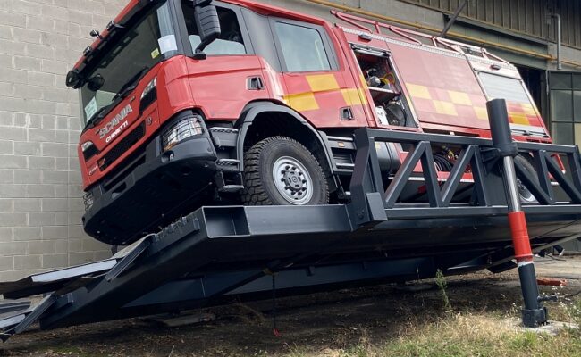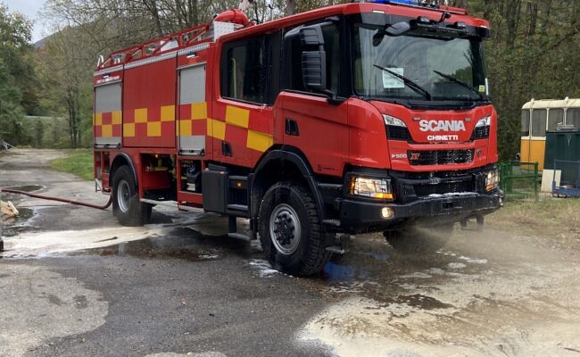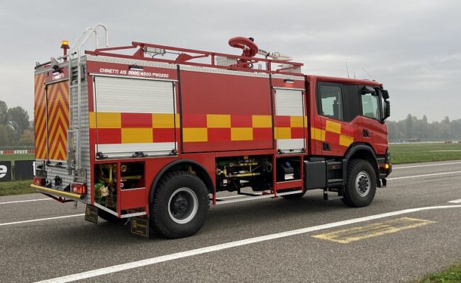 Cabin: 4 doors – 06 seats original CB28 Scania crew cab, ECE R29 certified – Crew seats with SCBA holders integrated into the backrest.